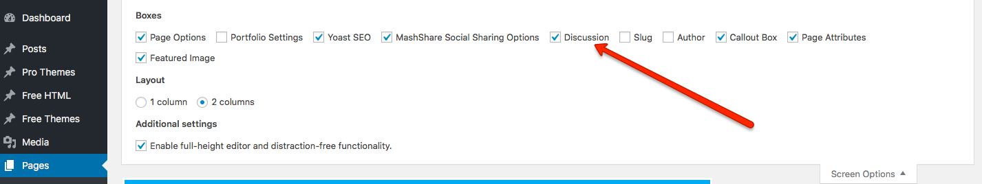 You see Discussion here ? thats what we have to check and thats the answer of our problem. Now how to hide Screen options box ? Well thats just click on it again thats it, Simple!